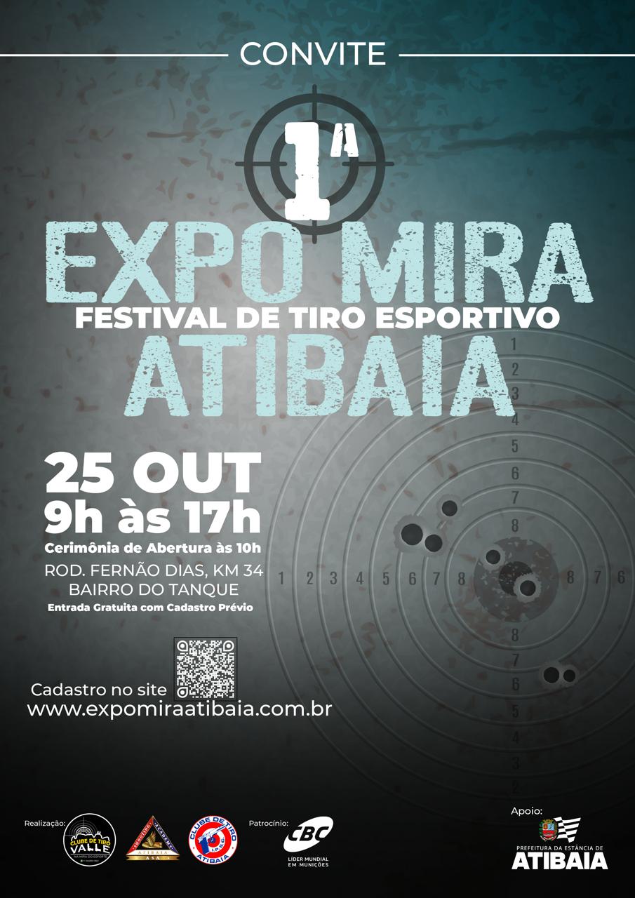 O 1º EXPO MIRA ATIBAIA: Festival de Tiro Esportivo é realizado pelos três principais clubes de tiro de Atibaia, com apoio da Prefeitura da Estância de Atibaia. O evento, sediado na Atibaia Shooting Academy (ASA), celebra o tiro como modalidade esportiva e olímpica e busca aproximar a comunidade, as forças de segurança pública e o esporte. Seu propósito é desmistificar a modalidade, valorizar o civismo e a responsabilidade e promover a integração em um dia de atividades voltadas para toda a família.